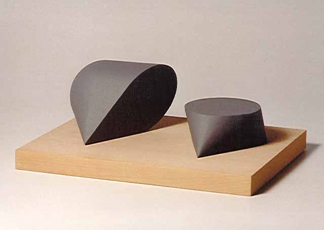 Die vorgegebene Form ist aus Kegel, Kugel, Pyramide und Zylinder zusammengesetzt. Ein Fragment der Form in anderer Raumlage ist zu ergänzen.