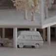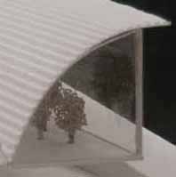 Die Halle wird von zwei tonnenförmigen Schalen überdacht, die