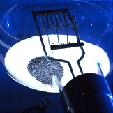 Ausstellungseingang auch eine Bühne für Lichtexperimente