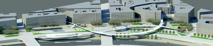 Der Platzraum als Raumplatz gedacht verbindet mit einem Skywalk die