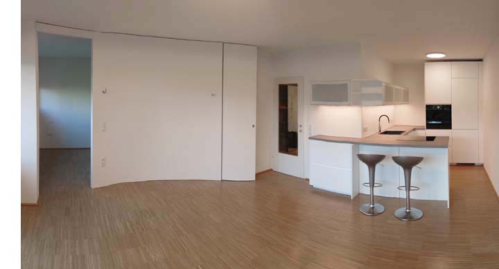 Runde Wand mit Schiebe- und Drehflügel optimiert die Nutzung,