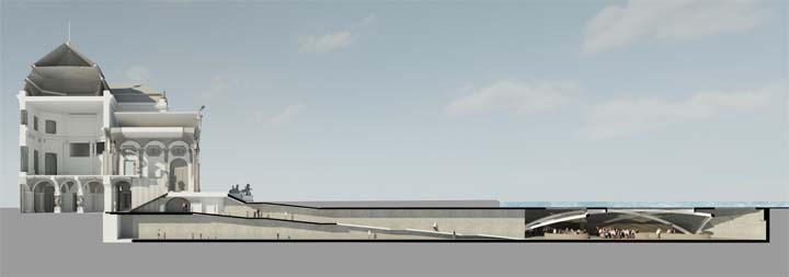 Kavalierstraktes in das Untergeschoß des Visitor Centers. Durch