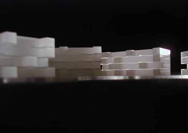 Wettbewerb für eine Wohnsiedlung mit 280 Wohneinheiten an einer stark befahrenen Straße (Autobahnzufahrt) - 3. Rundgang. Heutzutage lösen sich festgefügte gesellschaftliche Strukturen immer weiter auf, die Familie scheint – zumindest für bestimmte Lebensabschnitte – nicht immer die gültige Lebensform. Daraus resultieren entsprechend der Heterogenität der Gesellschaft verstärkte Anforderungen an die Variabilität von Wohnungsgrundrissen. Ziel war es, alle Geschoßwohnungen auf ein einheitliches System zu beziehen, das ein möglichst wandelbares Angebot von unterschiedlichen Wohnungsschlüsseln ermöglicht. Es wird vorgeschlagen, ein Stahlbetonskelett mit einem regelmäßigen Stützraster und regelmäßig angeordneten Versorgungsflächen als Grundlage der Gebäudetypen zu errichten. Es wurden daher die Kennwerte auf die einzelnen Wohnungstypen bezogen und auf eine starren Verteilungsschlüssel verzichtet. Die Grundrißübersicht zeigt die Austauschbarkeit und Überführbarkeit der Typen untereinander.