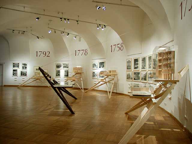 auf ihnen die Ausstellung von der Wand in den Raum geführt wurde.