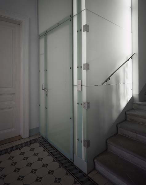 Obwohl man trotz des gemeinsamen Europas beide Bewohner heute erschreckender Weise – vielleicht sogar mehr als damals – als „Fremde“ ansehen würde, wirkt ihre Möblierung fast wie eine perfekte Illustration der Wohnkultur der Wiener Moderne. Heterogenität und informelle Anordnung der Möbel ist hier das moderne Moment, nicht das Design der Einrichtung. Der Part der Architekten war hier lediglich, mit den Bauherren die bauliche Struktur und deren Farbgebung zu erarbeiten. Dabei wurde mit einem durch alle Geschosse durchgehenden gläsernen Leuchtkörper das Stiegenhaus des kleinen Zinshauses aus dem 19. Jahrhundert ab dem ersten Stock zu einer internen Wohnungsstiege umfunktioniert.