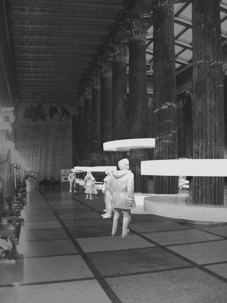 Die vorgeschlagene Ausstellungsarchitektur sollte das im Parlamentsgebäude damit präsente Gesellschaftsbild durch eine Dynamisierung der historischen Architekturelemente konterkarieren und aktualisieren.