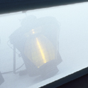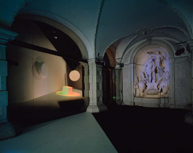 Ausstellungseingang auch eine Bühne für Lichtexperimente