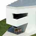 flachgeneigten Satteldach - aber ohne konventionellen Giebel - macht