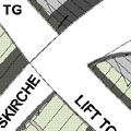 Der Platzraum als Raumplatz gedacht verbindet mit einem Skywalk die