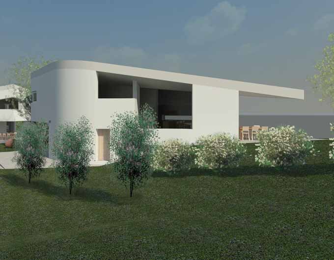 Fassade und einem flachgeneigten Satteldach - aber ohne